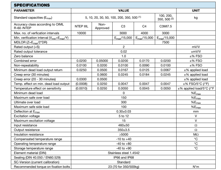 21605:  5223-B10-50 K-40P1 50,000 lb 40ft RTI 3mV/V 700 OHM WW NTEP IIIL 10 M FM WS IP67  o3z廣州南創(chuàng)電子科技有限公司