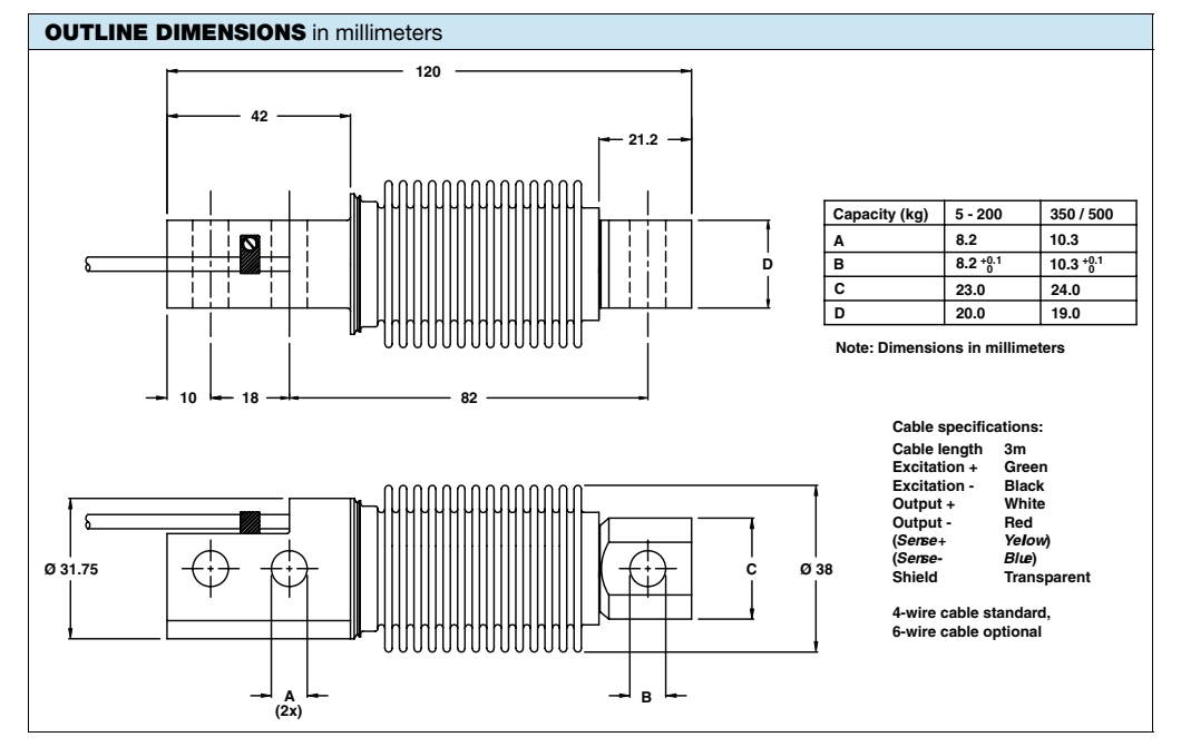 21466: Load Cell,SBM 363-B10-500 -20P1 500 lb 20ft RTI 3mV/V 350 OHM WW NTEP IIIL 10 S FMo3z廣州南創(chuàng)電子科技有限公司