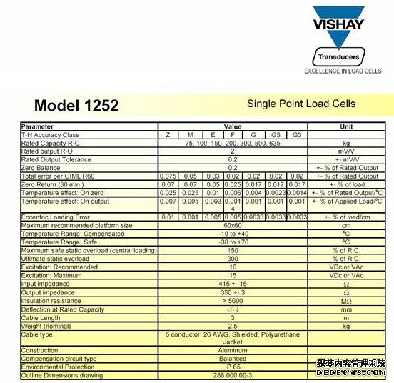 美國特迪亞1252-100kg傳感器特性:RMG廣州南創(chuàng)電子科技有限公司