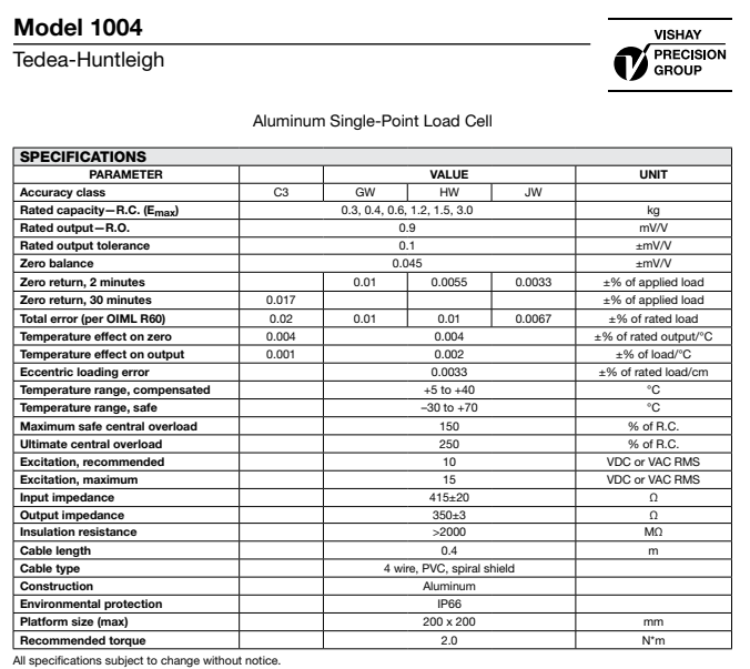 特迪亞tedea稱重傳感器1004-0.3KGGW技術(shù)參數(shù)圖:ibr廣州南創(chuàng)電子科技有限公司