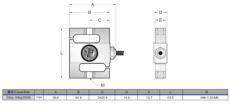 美國傳力BA-50kg稱重傳感器產(chǎn)品技術(shù)參數(shù):