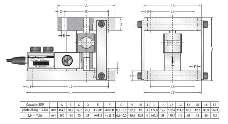 美國傳力Transcell稱重模塊SBS-250LB MODULE技術(shù)參數(shù)圖: