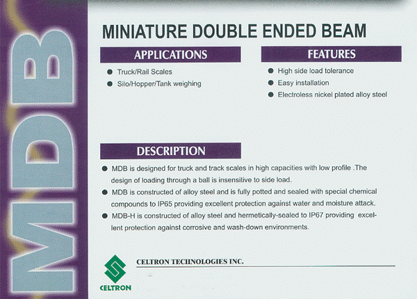 Celtron MDB雙剪切梁式稱重傳感器專為卡車和鐵路的低配置高容量規(guī)模設計。在裝載過程中不易受負載影響。VM4廣州南創(chuàng)電子科技有限公司