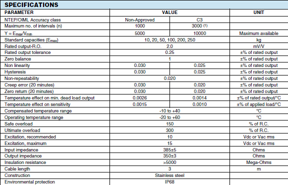 美國世銓Celtron HBB系列稱重傳感器所有量程如下: U34廣州南創(chuàng)電子科技有限公司