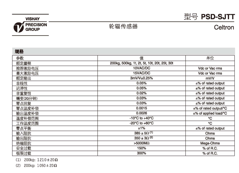 美國(guó)vishay celtron稱(chēng)重傳感器PSD-500kgSJTT產(chǎn)品技術(shù)參數(shù):659廣州南創(chuàng)電子科技有限公司