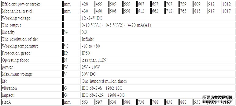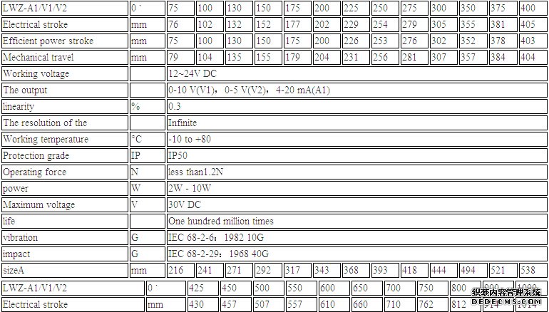德國VOLFA LWZ-100-A1直線位移傳感器同一系列不同量程型號:eOn廣州南創(chuàng)電子科技有限公司