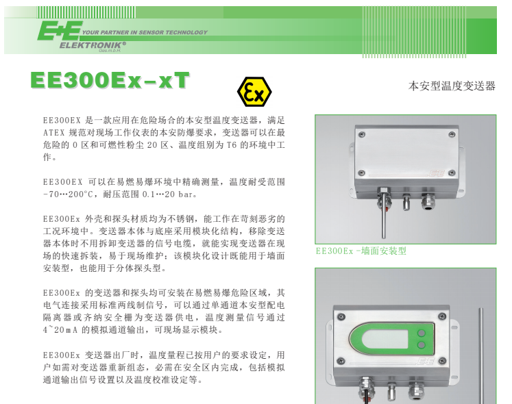 奧地利E+E ee300EX溫濕度傳感器產(chǎn)品概述: