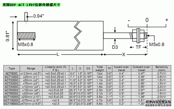 英國RDP ACT LVDT位移傳感器技術(shù)參數(shù)圖:YkH廣州南創(chuàng)電子科技有限公司