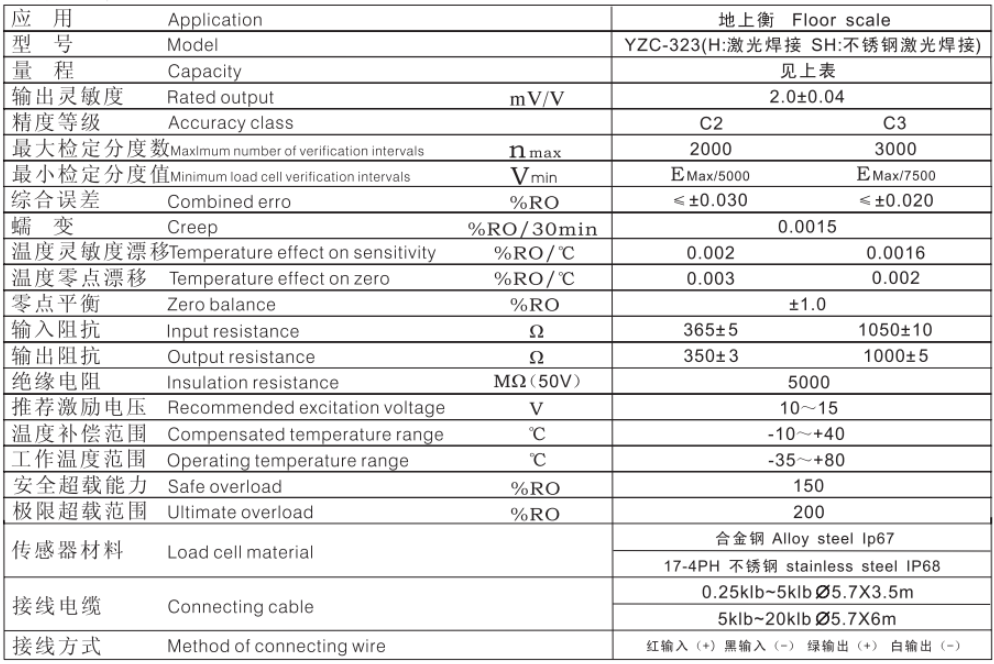 廣測(cè)GUANGCE YZC稱重傳感器技術(shù)參數(shù)圖:SAV廣州南創(chuàng)電子科技有限公司