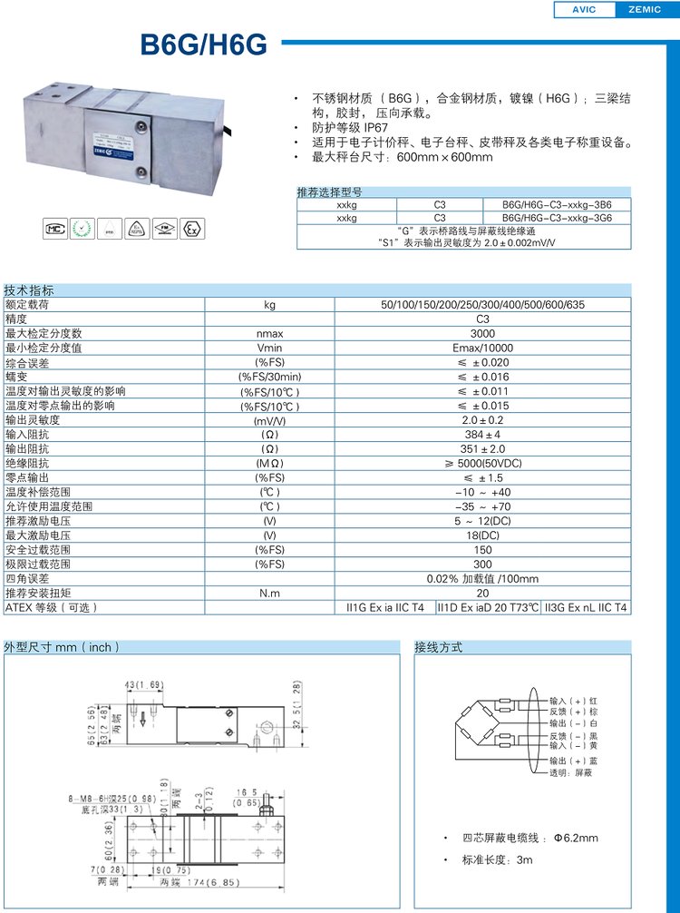 B6G-C3-50kg/100kg/150kg/200kg-3B6 ZEMIC中航電測稱重傳感器